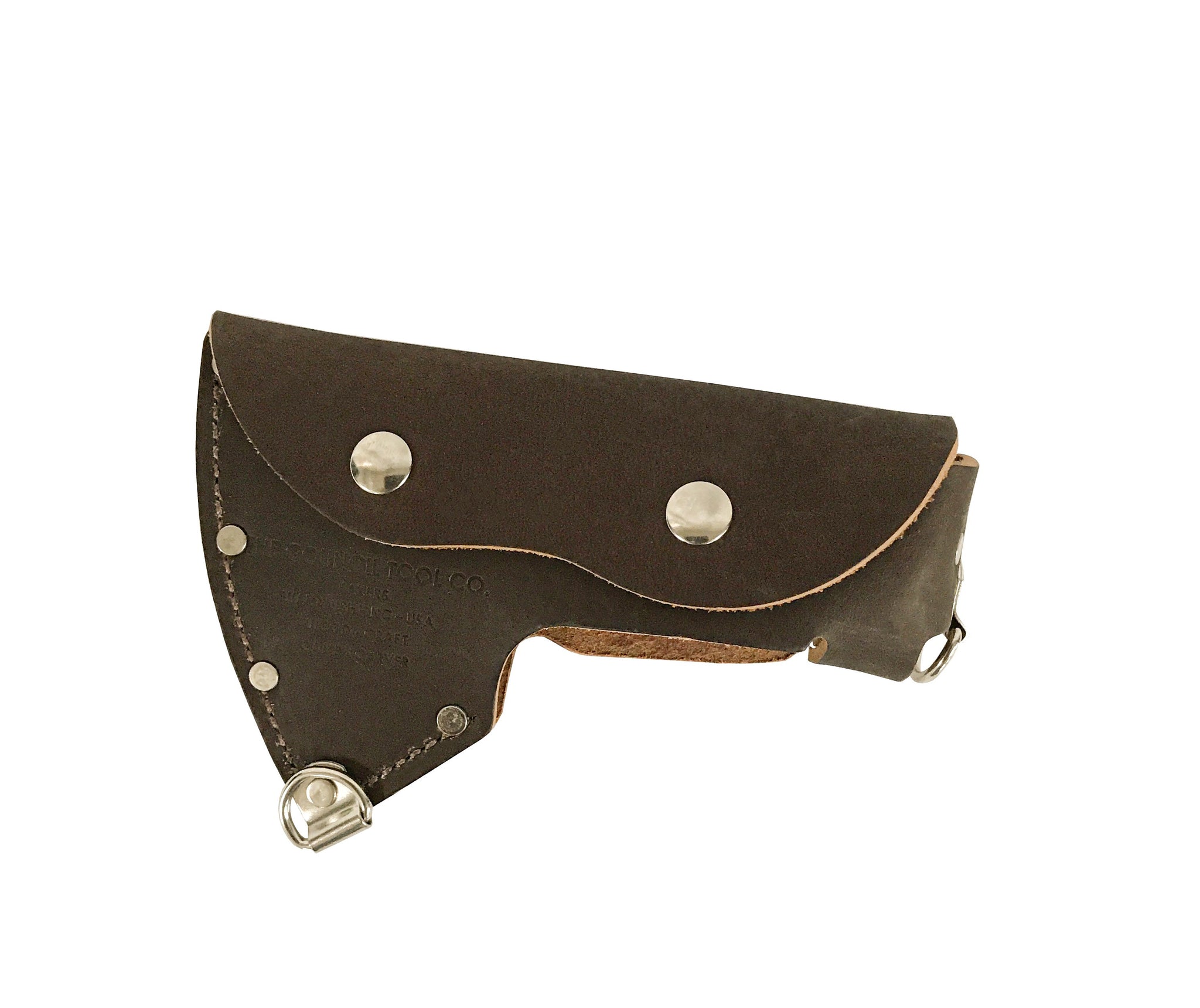 A high quality, fully welted, leather sheath, customized specifically for the Camp Carver Axe, sporting installed “D” rings crafted to accommodate the optional shoulder sling which allows your Pack Axe to be easily and safely carried on the shoulder. The Pack Axe Sheath can also be attached to a belt, Mollie system, or to your backpack. This unique and stoutly constructed leather sheath will protect your premium Pack Axe from all the elements while protecting you and others from the extremely sharp blade of your Pack Axe for many years to come.