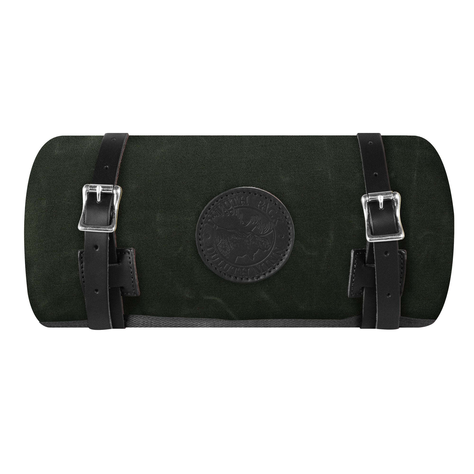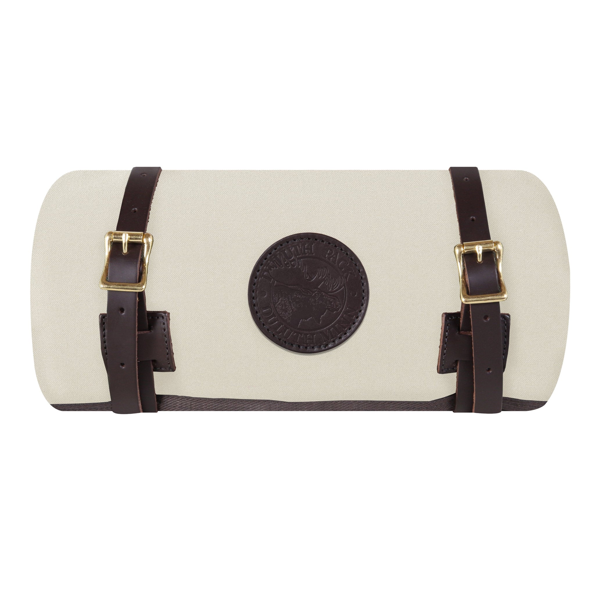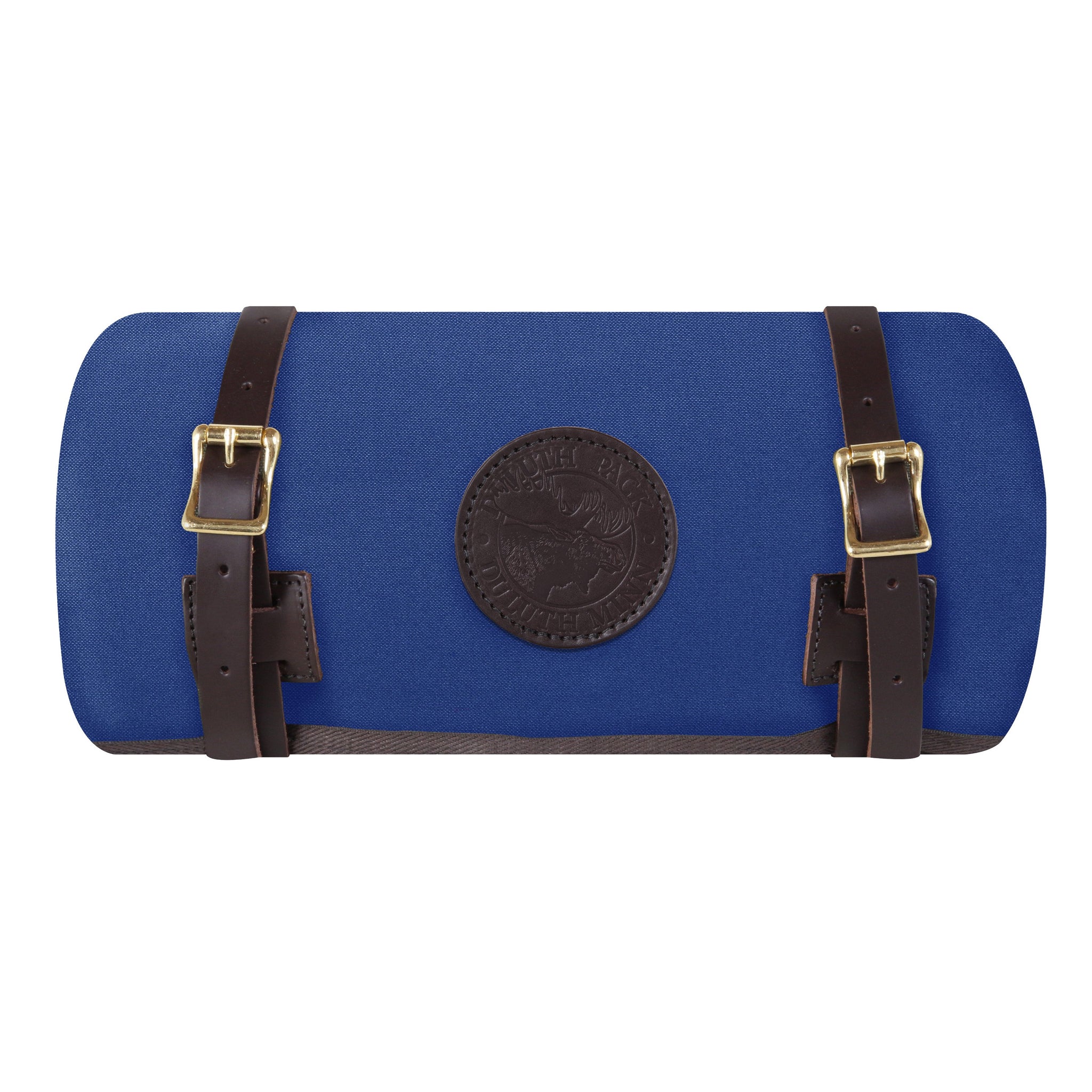 - Once rolled, the bedroll secures with two leather straps and buckles.