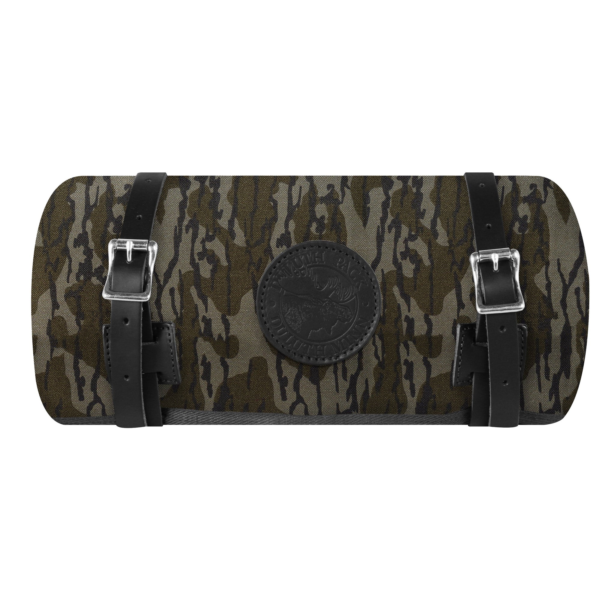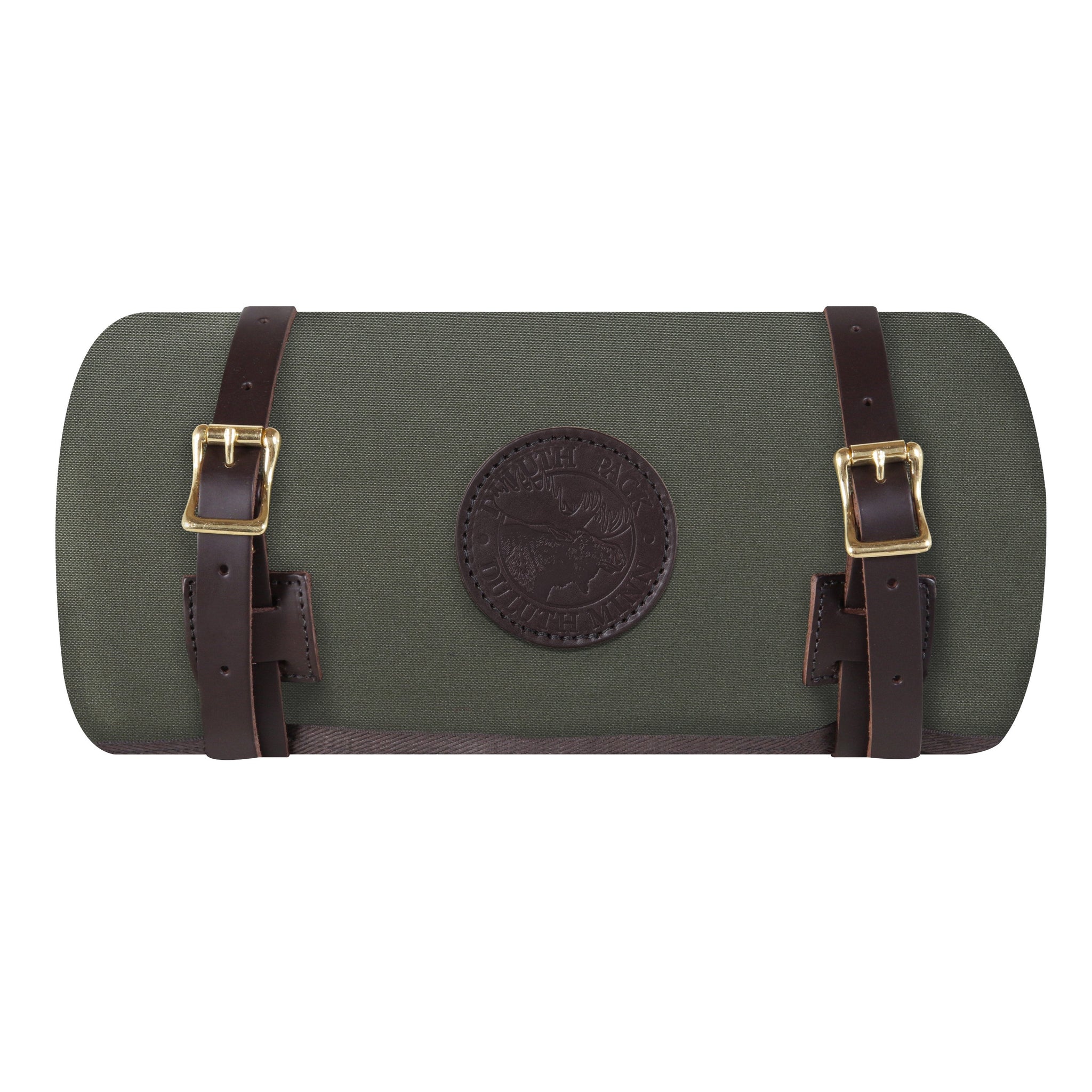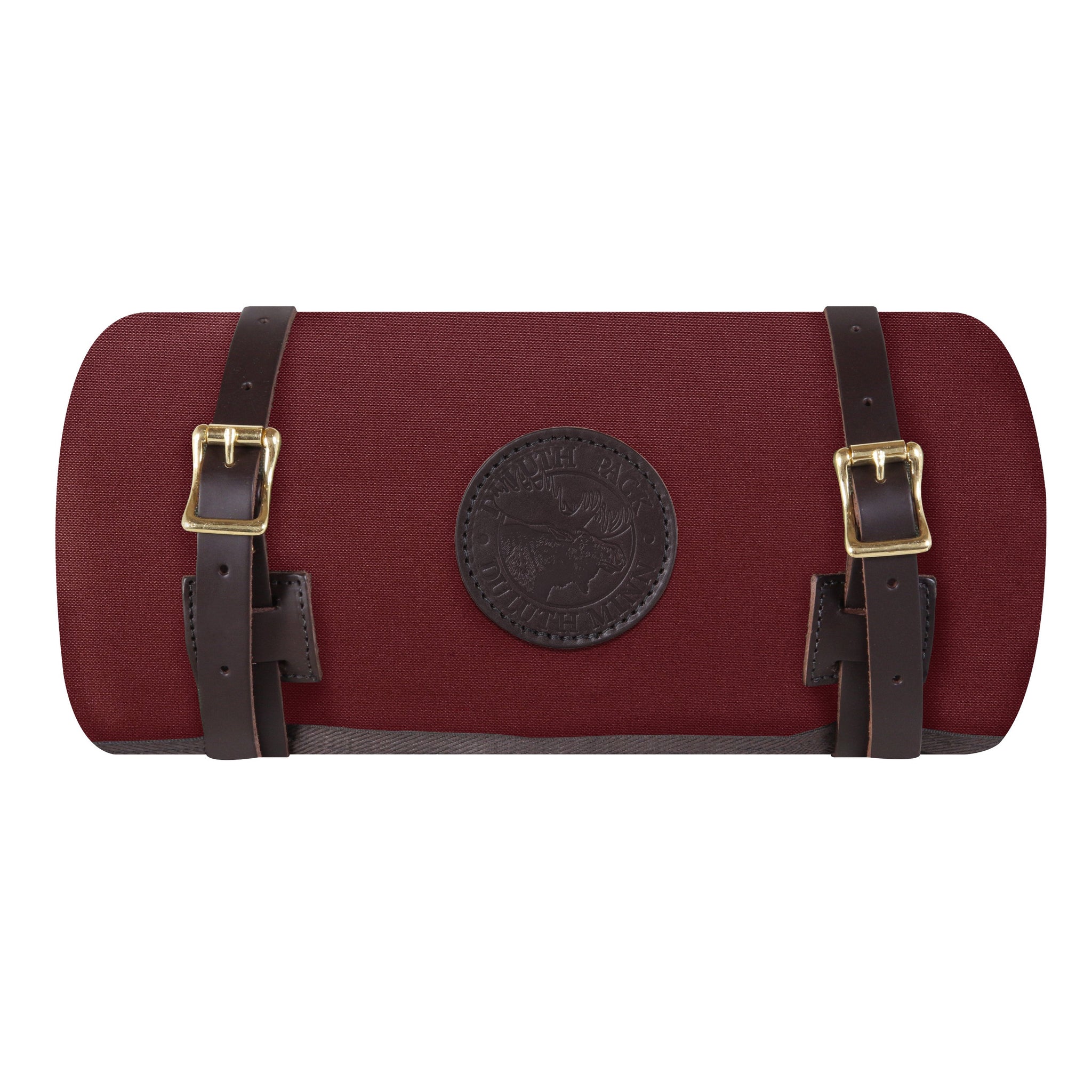 - Once rolled, the bedroll secures with two leather straps and buckles.