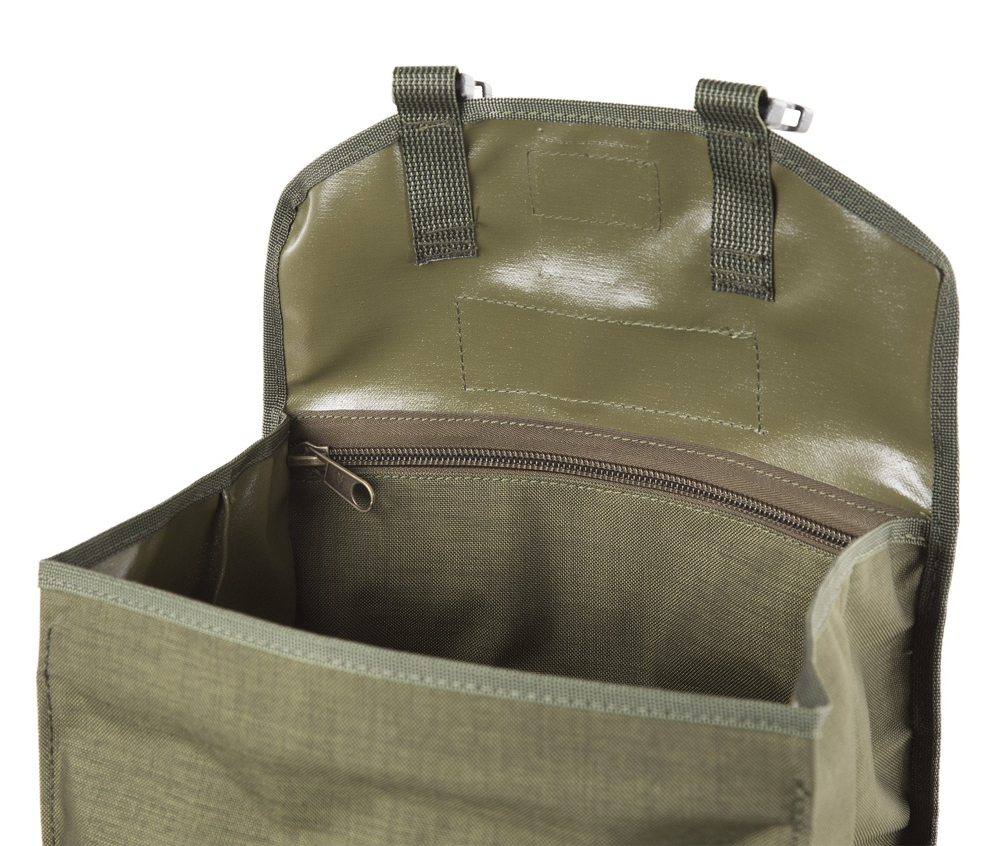 - Materials: 1000D PUR coated Polyamide fabric (green, black: Cordura, M05: Foxdura), Delrin special plastic buckles and 8 mm coil zippers.