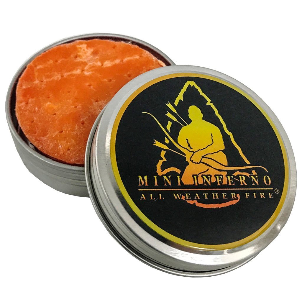 Being cold is tough. So is eating cold food. Never again will the elements determine your fate when it comes to keeping warm or enjoying a nice hot meal. The journey from no fire to sure-fire couldn't be easier. Simply tear a disc to expose the fibers and hit it with a spark, it’s that easy. Each disc provides 5-7 minutes of flame providing you with ample time to turn your mini fire into a sustainable heat source for core temperature control and camp cooking. Even in harsh, wet and flat out soggy environments, Mini Inferno is your way to sure fire anytime, every time. When you carry an Inferno, you’re never left out in the cold.