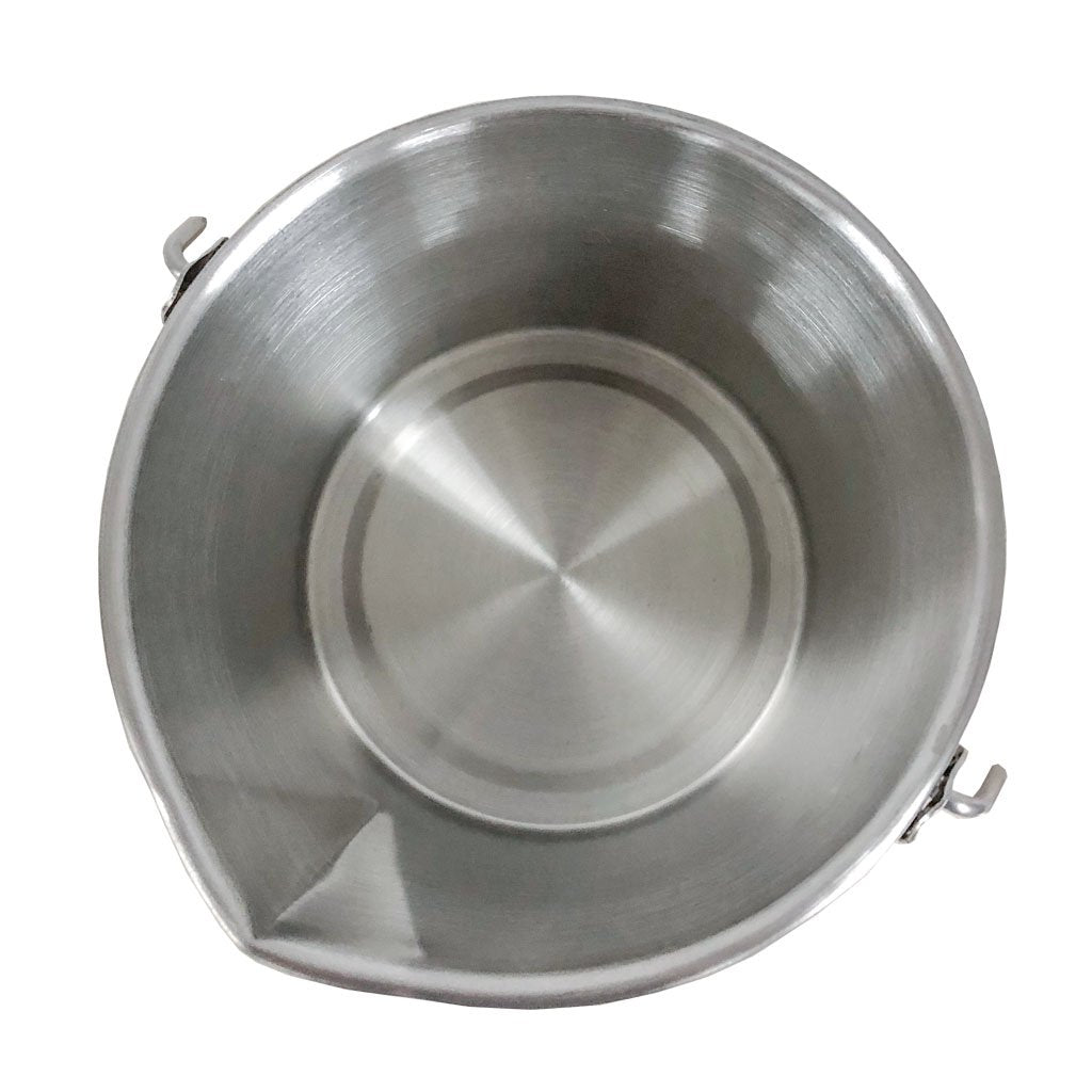 • Bail with bat wing handles and pour spout