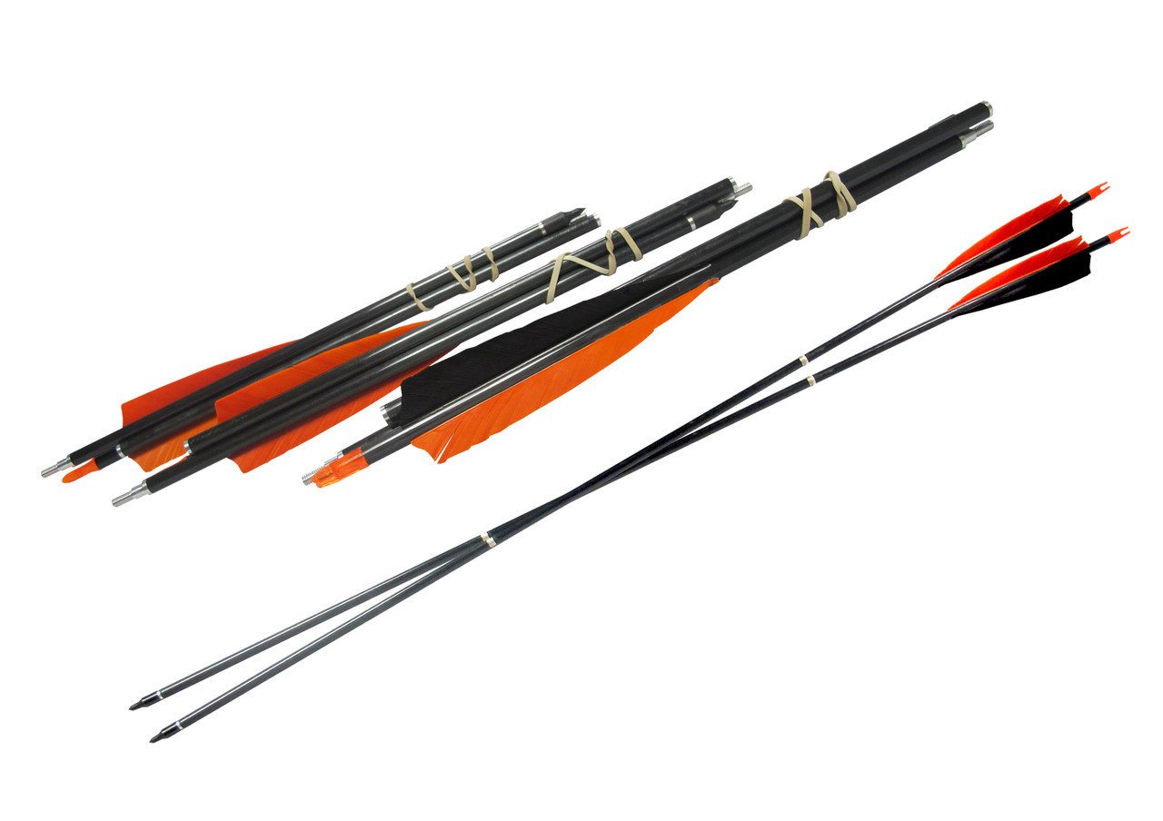 These standard three piece take down arrows break down into three pieces, and were designed to go with the compact Pocket Hunter which will easily fit in your survival pack. Each arrow comes with feather fletching and a removable field tip that can be interchanged with other types of tips. The shafts are standard carbon arrow shafts and are made with our aluminum Break Down Arrow Inserts. They can be used with any longbow, recurve bow, compound bow, or Pocket Hunter.